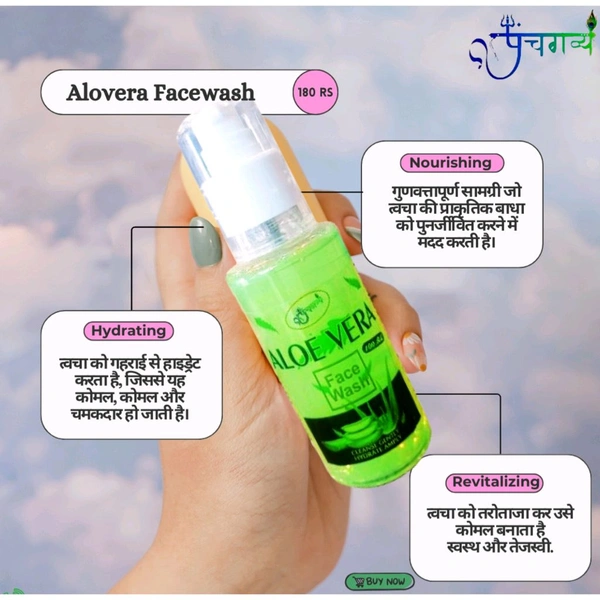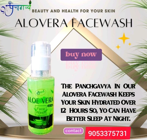 Panchgavya Hydrating Aloevera Face Wash: Relief for dry skin. What it does: Panchgavya Aloevera Hydrating Face Wash is a soap-free formulation that replenishes lost moisture from your skin after every wash, eradicating dry and stretched skin. It is enriched with Aloevera which cools and soothes while Aloe Vera tones and softens your skin. Our Panchgavya Aloevera Face Wash combines