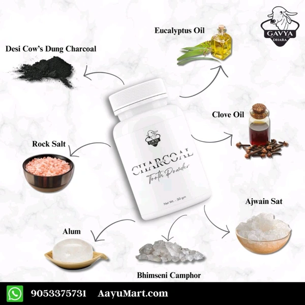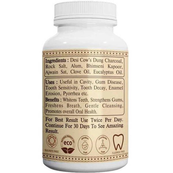 Gavyadhara Charcoal Tooth Powder is made with a blend of natural ingredients, including Desi Cow Dung's Charcoal. These ingredients work together to gently polish away surface stains and plaque, leaving your teeth feeling clean and smooth. In addition to its cleaning power, Gavyadhara Charcoal Tooth Powder also contains Bhimseni Camphor that freshen your breath and leave your mouth feeling refreshed. The combination of Clove Oil and Ajwain Sat provides a natural, minty flavor that will leave your mouth feeling clean and invigorated.