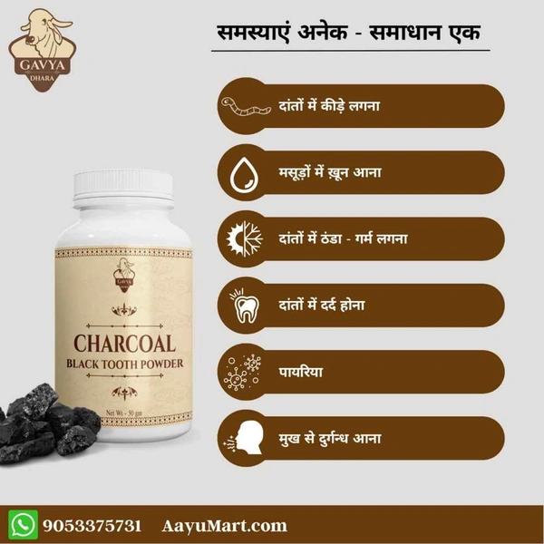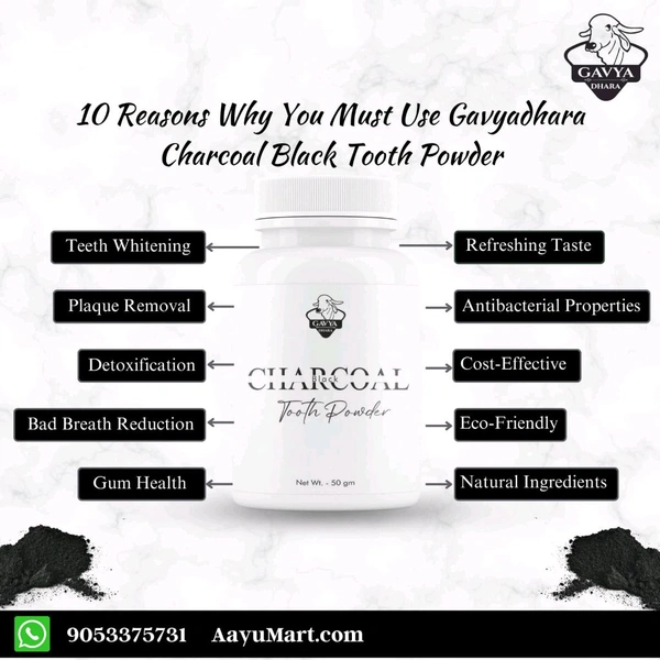 Our all-natural Charcoal Tooth Powder, the perfect alternative to chemically processed toothpaste and tooth powder. Made with only the finest natural ingredients, Gavyadhara Charcoal Tooth Powder is designed to effectively clean your teeth and freshen your breath without any chemicals.