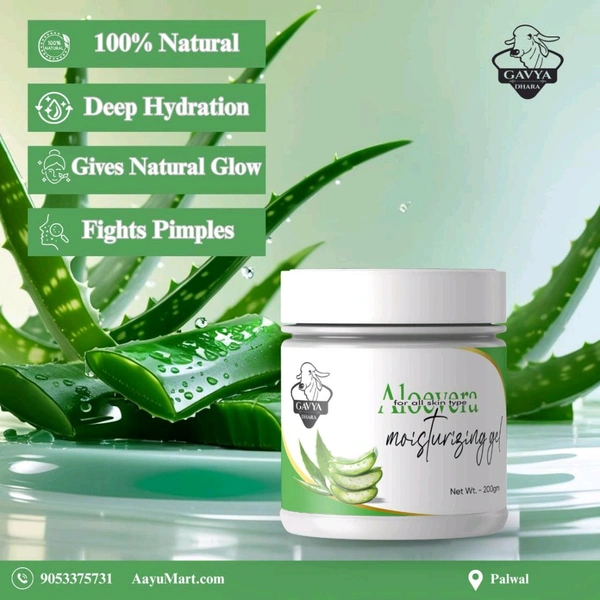 Gavyadhara presents premium quality Aloe Vera Moisturizing Gel infused with the goodness of pure Rose Ark for deep skin hydration and nourishment. With 80% pure Aloe Vera extract and 10% pure Rose Water, this gel offers a refreshing and soothing experience for all skin types.