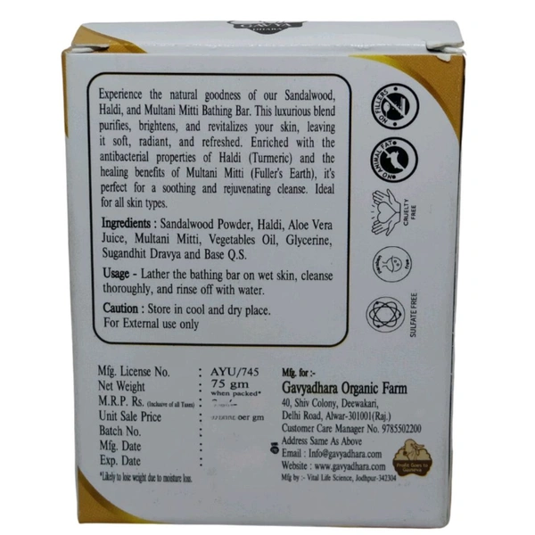 Gavyadhara Haldi Chandan Soap is an excellent choice for those seeking a natural and chemical-free skincare routine. Ideal for daily use, it provides a refreshing cleansing experience while nourishing the skin with Ayurvedic ingredients.