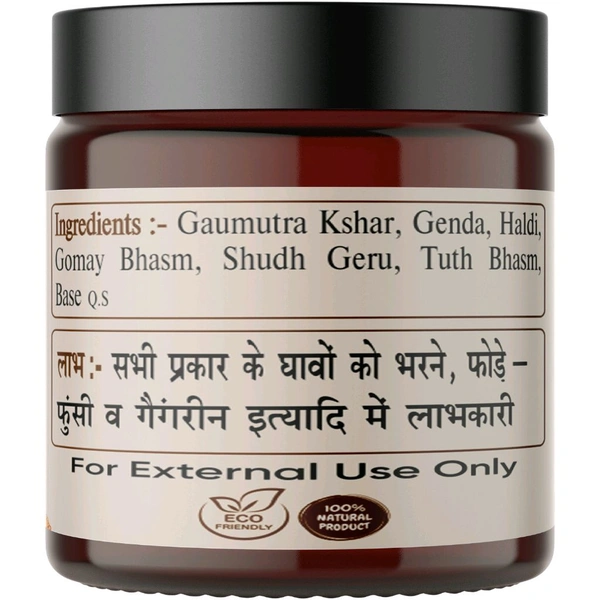 • Gavyadhara Gomay Genda Marham is best Panchagavya based ointment for curing Wounds, Fester, Gangrene etc.