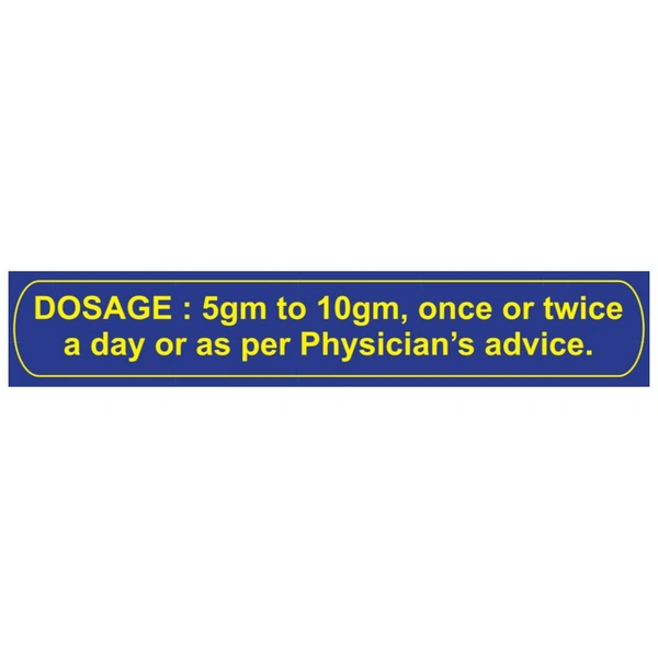 मात्रा: दिन में एक बार या दो बार 5 ग्राम से 10 ग्राम या चिकित्सक की सलाह के अनुसार।
